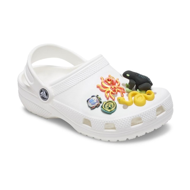 Os maravilhosos Jibbitz Charms são acessórios que você coloca nos seus Crocs. Eles são fáceis de colocar e retirar, para que você possa mudar seus estilo a qualquer momento. Adicione os encantos dos Jibbitz Charms aos seus Crocs para mostrar que seu estilo e criatividade são únicos! De personagens conhecidos a emojis populares. Tem algo a dizer? Diga! Se ama alienígenas e unicórnios? Mostre! Fácil de colocar e ser removido, combina com qualquer look, companhia perfeita com detalhes bem visíveis. Não é um brinquedo. Não se destina a menores de 3 anos de idade. As imagens do produto podem sofrer pequena alteração de cor dependendo do monitor e da resolução em que elas sejam visualizadas.