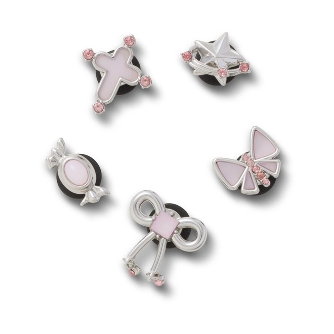 Kit Jibbitz Prata e Rosa Pack com 5 Peças - Foto 1