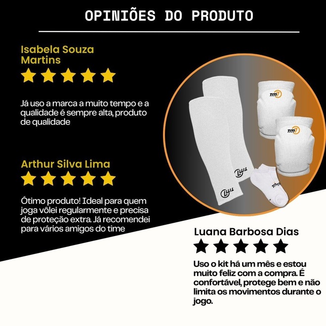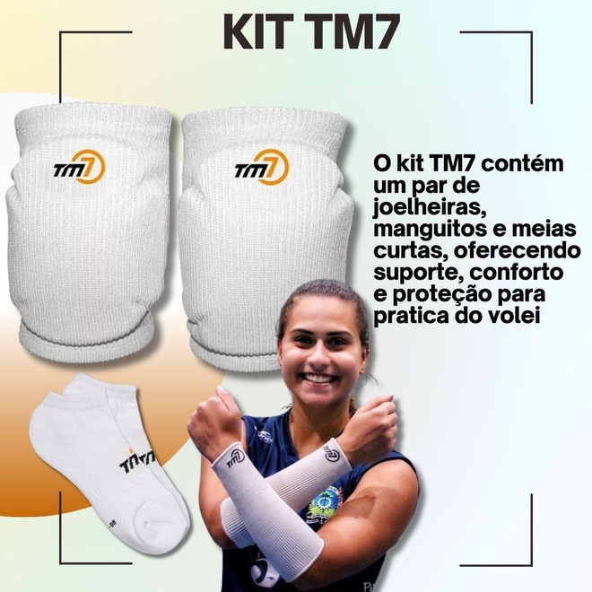 Kit Joelheira + Manguito Curto + Meia Curto Tm7 Vôlei Profissional - Adulto
