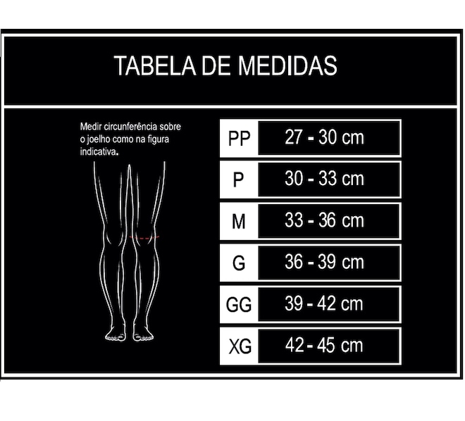 TABELA DE MEDIDAS Obs. Com o joelho esticado, meça com uma fita métrica a circunferência central do seu joelho.