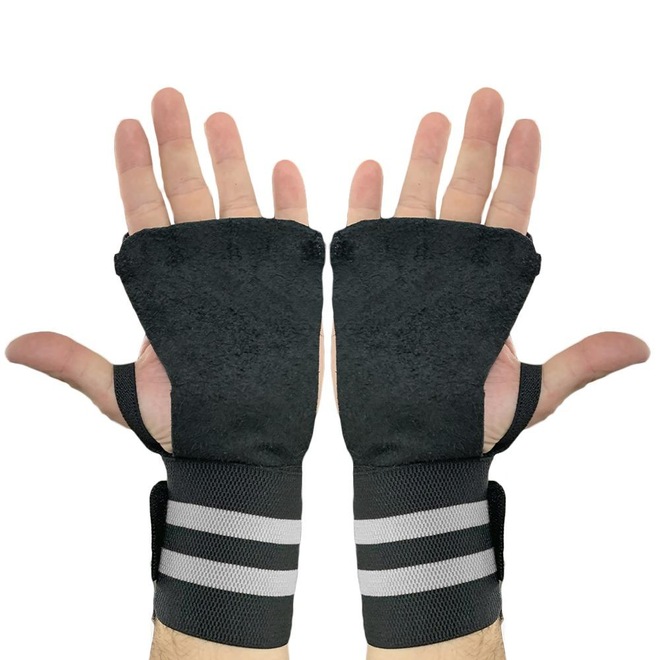 O protetor de palma em couro 100% proporciona uma camada extra de segurança, evitando lesões e melhorando a aderência durante os exercícios. A fita aderente de nylon e poliéster assegura um ajuste perfeito, permitindo que você se concentre no seu desempenho sem distrações.