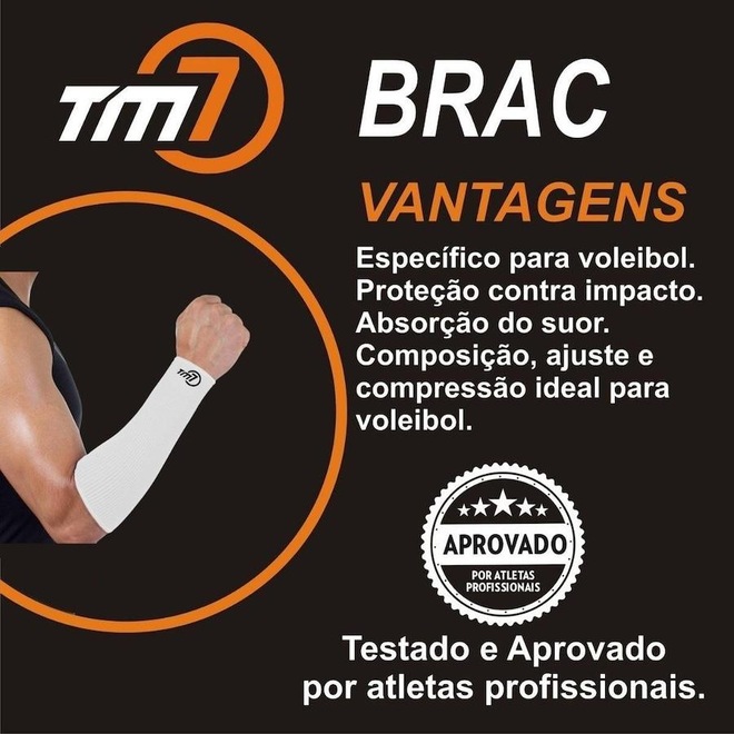 Preparamos para você um excelente kit composto de 1 par manguito curto e 1 par da joelheira TM7, a marca preferida dos atletas. Aqui você tem a praticidade de adquirir com um click o seu conjunto tm7 com as melhores condições. O Manguito Para Vôlei Brac curto Tm7 Sports é um acessório exclusivo da TM7 Sports que possui características específicas exigidas para prática do voleibol. Um produto testado e aprovado por atletas profissionais. Fundamental para a sua proteção, ele é capaz de minimizar o desconforto e hematomas provocados pelo impacto da bola. Apresenta uma composição específica para as necessidades da modalidade, garante a evaporação do suor, não possui costura, é anatômico e não provoca odor. Tudo isso com muito conforto, um produto de alta qualidade que é essencial para todos os jogadores. Os benefícios da Joelheira vôlei tm7 Pro Light são muitos! Protege o joelho contra o impacto, garantindo maior segurança e diminuindo as chances de lesão. Além disso, possui compressão na medida certa para manter o protetor no lugar sem tirar a liberdade de movimentos. Seu design oferece cobertura total ao joelho e laterais, garantindo total proteção e conforto durante os treinos e jogos. O material interno em borracha especial não absorve umidade, mantendo os atletas secos e confortáveis por mais tempo. Desenvolvida por atletas profissionais, é um dos protetores mais vendidos do mercado! Instruções de lavagem: Manual / Não alvejar / Não secar em tambor / Não passar a ferro / Não realizar lavagem a seco; Escolha o tamanho mais adequado observando a tabela de medidas. Especificações Manguito: Composição: 44% Poliéster | 24% Algodão | 32% Elastodieno. Tamanho Único - 39cm Comprimento / 17cm a 18cm Punho / 23cm a 24cm Cotovelo Gênero: Unissex Contém: 1 par Especificações Joelheira: Gênero: Unissex Modalidade: Vôlei, basquete, futsal, handebol Composição Malha: 66% poliéster 16% algodão 18% elastodieno (contém Látex Natural) Composição Forro: 93% Algodão 07% Elastano Recheio Interno: 100% borracha Contém: 1 parref: M114Z9
