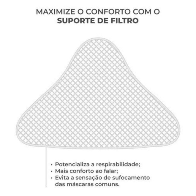 Conteúdo do kit: 1 Máscara Sport, 30 Filtros de Ar Tripla Camada e 1 Suporte de Filtro