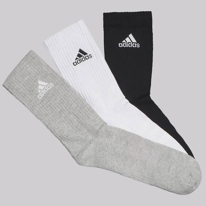 Composição branca e preta: 60% Algodão, 27% Poliéster, 10% Poliamida e 03% ElastanoComposição cinza: 53% Algodão, 34% Poliéster, 10% Poliamida e 03% ElastanoContém: 06 pares de meia - 02 branco, 02 preto e 02 cinzaIndicado para: CasualOrigem: NacionalGênero: UnissexCano: AltoTamanhos:P: 35-37M: 38-40G: 41-43