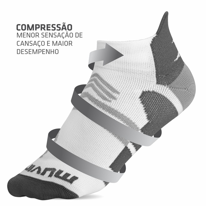 A Meia Cano Curto de Compressão Arrow da Muvin foi desenvolvida para proporcionar conforto e melhor desempenho a praticantes de atividades como corrida, caminhada e ciclismo, bem como de outros esportes e atividades fitness. Isso porque é feita com material com boa respirabilidade e que protege os pés contra bolhas.