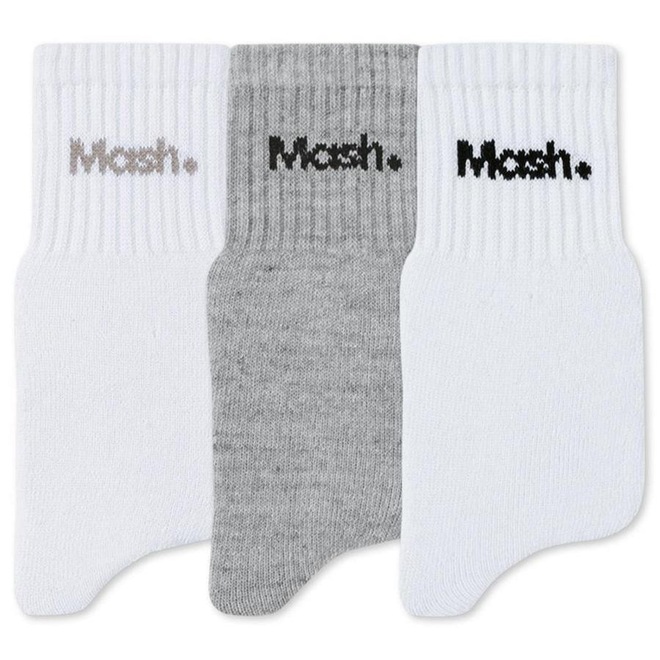 Kit com 3 pares de meias, cano curto com o logo mash discreto no punho. o trio possui cores básicas e comprimento médio, perfeito para quem usa meias frequentemente. o punho canelado é firme e muito macio.ref: M0W2VA