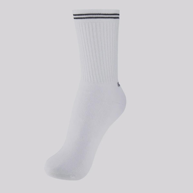 Composição: 69% Algodão, 28% Poliamida e 03% Elastano Contém: 03 pares na cor branca Indicado para: Casual Origem: Nacional Gênero: Unissex Cano: Longo Tamanhos 37 ao 40 41 ao 44