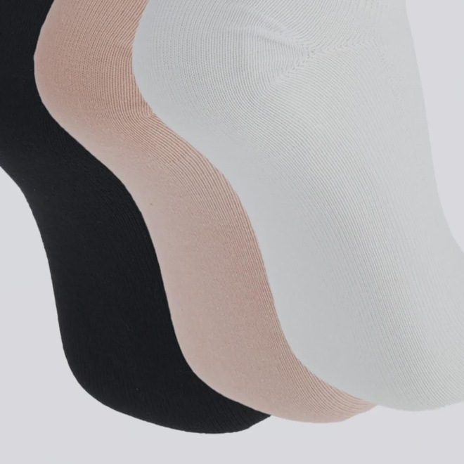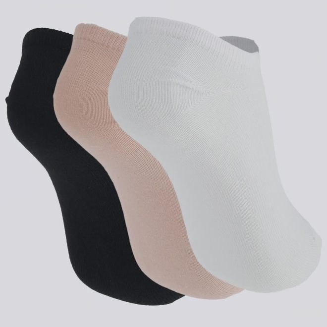 Composição: 66% Algodão, 29% Poliamida, 03% Elastano e 02% Outras fibras Contém: 01 par na cor branca, 01 par na cor rosa e 01 par na cor preta Indicado para: Casual Origem: Nacional Gênero: Feminino Cano: Baixo Tamanho: 34-39