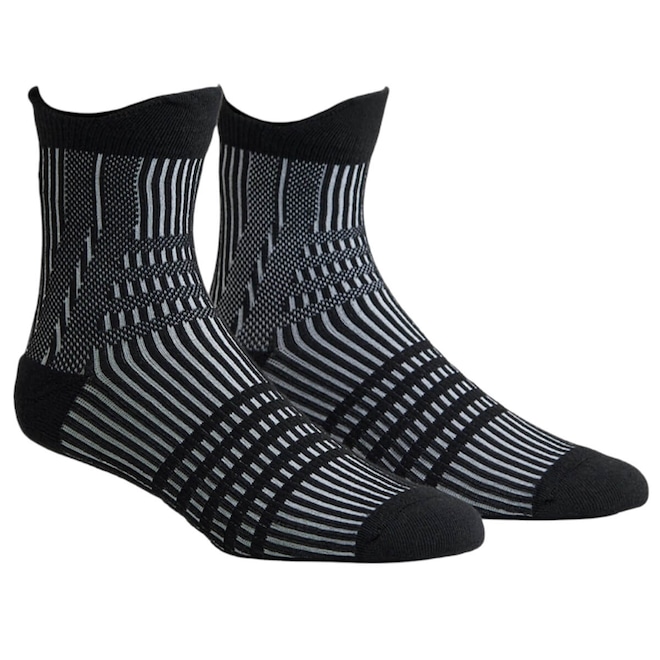 Com suporte de arco plantar, oferece compressão, melhora o conforto, reduz a fadiga e evita que a meia escorregue.
