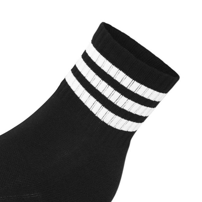 - Detalhamento: Embalagem com 03 pares de meias cano médio (aproximadamente 8cm) na cor preta. Camada extra de tecido no calcanhar e ponta dos dedos para proporcionar mais conforto. Logo Adidas na cor preta na região dos dedos. Três listras no cano, suave compressão na região do médio pé;