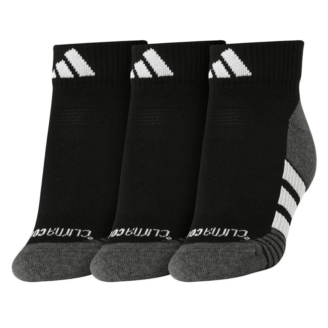 - Detalhamento: Embalagem com 03 pares de meias cano baixo (aproximadamente 3,5cm). Amortecimento estratégico no calcanhar e na parte frontal do pé para suavizar cada passada. Logo Adidas no cano e escrita Climacool na região dos dedos, suave compressão na região do médio pé;