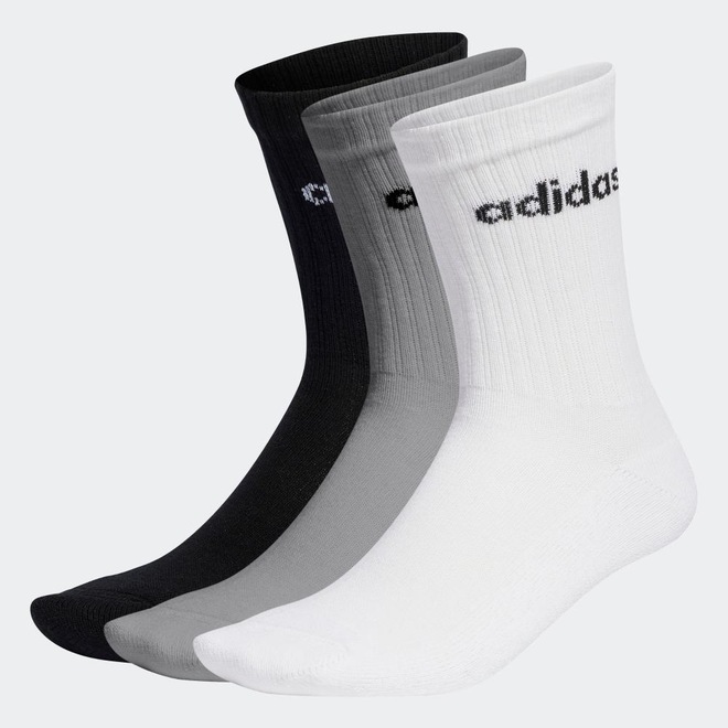 Estas meias adidas de comprimento médio são clássicas e confortáveis. Elas têm punhos canelados esportivos para mantê-las no lugar, além de amortecimento nos calcanhares e nos dedos. Prepare-se para o treino e o fim de semana com este pacote de três pares. Este produto é composto por no mínimo 50% de uma mistura de materiais reciclados e renováveis.