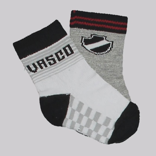 Composição: 73% Algodão, 24% Poliamida, 02% Elastano e 01% ElastodienoContém: 01 par na cor branca e 01 par na cor cinzaIndicada para: CasualOrigem: NacionalClube: VascoGênero: UnissexIdade: InfantilCano: MédioTamanho único: (17-20)