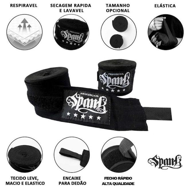 O kit reúne os itens básicos para treinamento de Boxe ou Kickboxing.Todos os produtos são da marca nacional Spank Co.