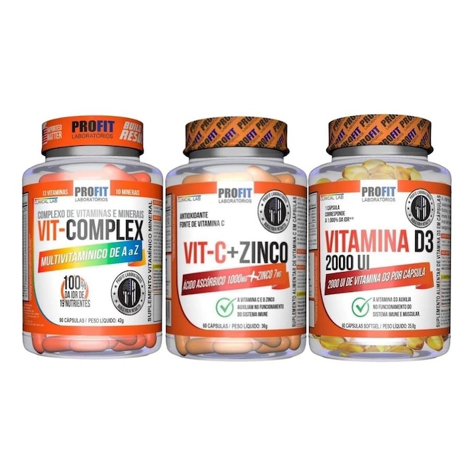 Kit Multivitamínico C + Zinco + D + Vitaminas Profit