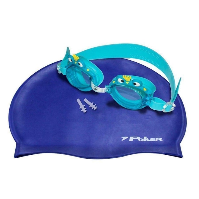 Nome: Kit Óculos + Touca + Protetor de Ouvido de Natação Infantil Poker Cartoons