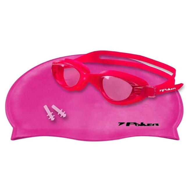 Kit de Natação Poker Navagio 13157-RRR com Touca, Óculos e Protetor de Ouvido - Adulto
