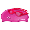 Contando com 3 itens essenciais para a prática de esportes aquáticos, o kit traz a presença de Óculos, touca e protetores de ouvido.