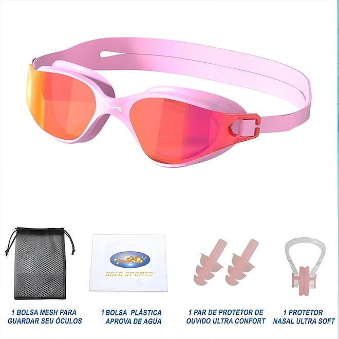 Kit Natação Gold Sports Óculos Lince Demi Mirror Hd + Mesh Bag + Clip Nasal + Protetor de ouvido - Foto 1