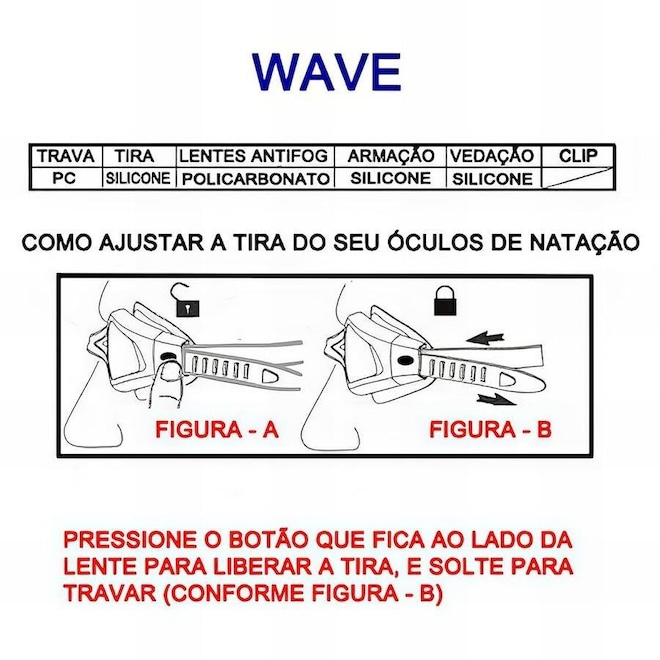 Composição: policabornato, silicone,pvc, polipropileno, abs, elastano