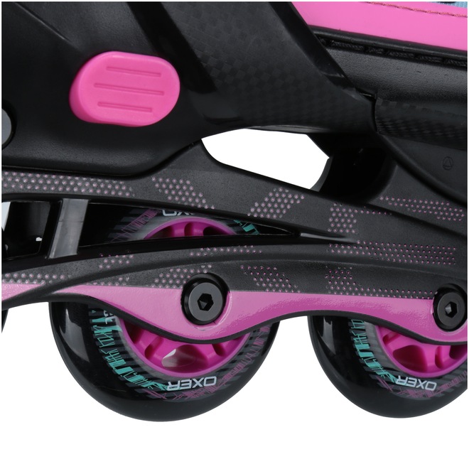 PresilhaTrava de Segurança Sim Material da Base Polipropileno Material da Roda PU (Poliuretano) Quantidade de Rodas Quatro Tamanho da Roda 72 mm Rolamento ABEC 5 Dureza 82a Tipo de Bota In-Line Passante Em Tecido