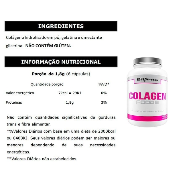 c) Colágeno: Sugere-se 6 cápsulas ao dia.