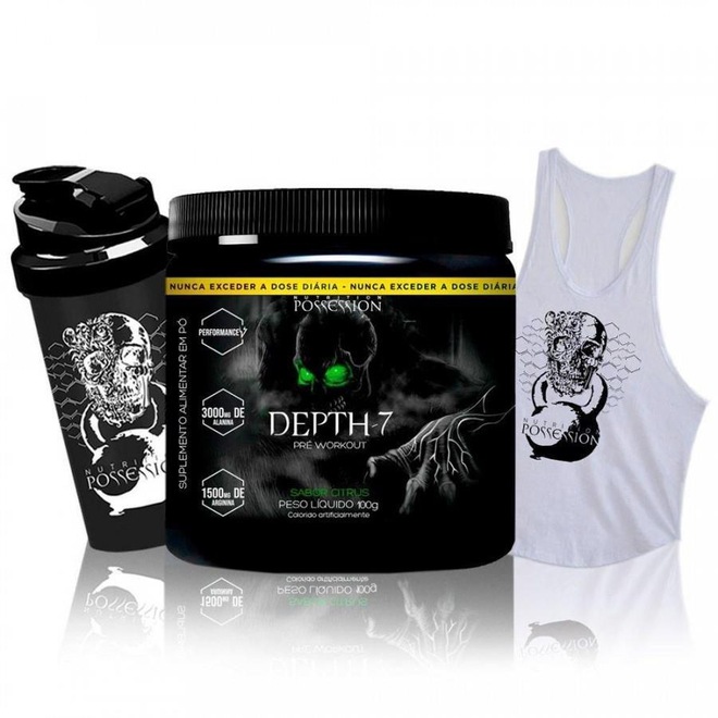 Kit Pré Treino Depth-7 Possession Nutrition (Alanina + Arginina) - 100g+ Camiseta Regata + Coqueteleira - 600ml