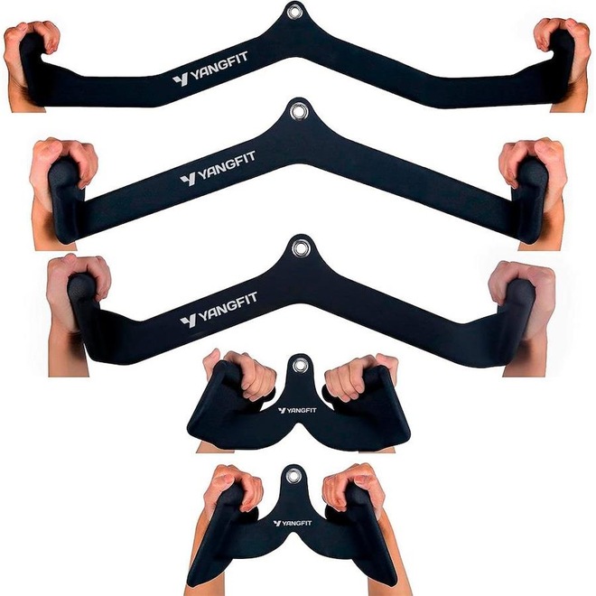 Deixe seus treinos mais eficientes e versáteis com o Kit de Puxadores Anatômicos de Academia Yangfit com 5 peças. Desenvolva a musculatura dos membros superiores com treinos mais focados e pegadas versáteis. Totalmente ergométrico, o Kit de Puxadores Anatômicos Yangfit amplia suas opções de exercícios com pegadas semi supinadas, neutras ou semi pronadas.