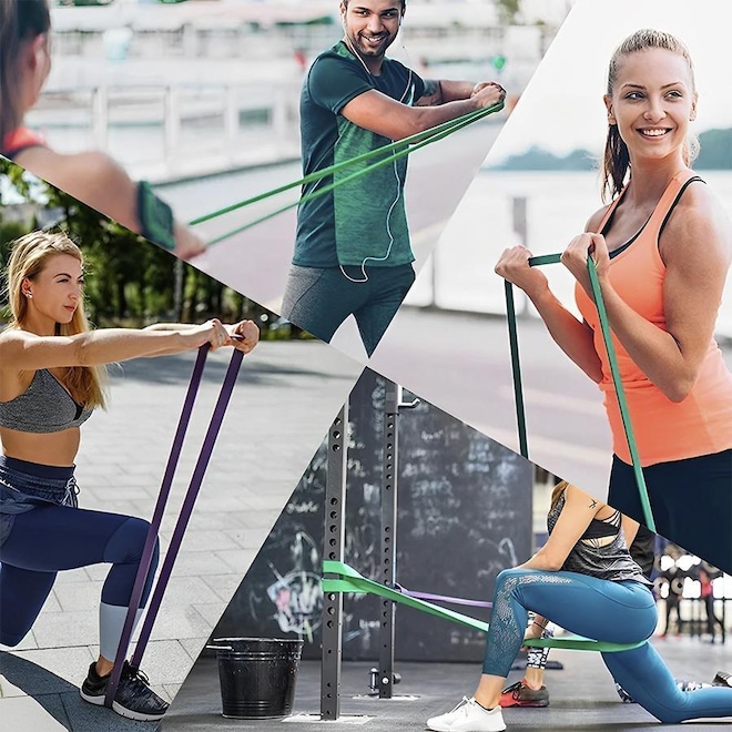 O Kit Super Banda Elástica Gold Sports Resistência Cross Trainner - com 6 Intensidades elástico extensores bastante usados em exercícios de força, resistência e alongamento.