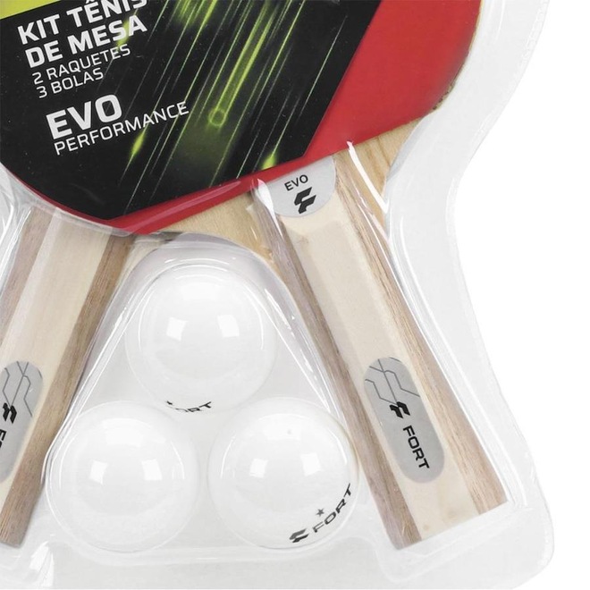 Kit de Tênis de Mesa Fort Evo: 2 Raquetes 1 Estrela + 3 Bolas