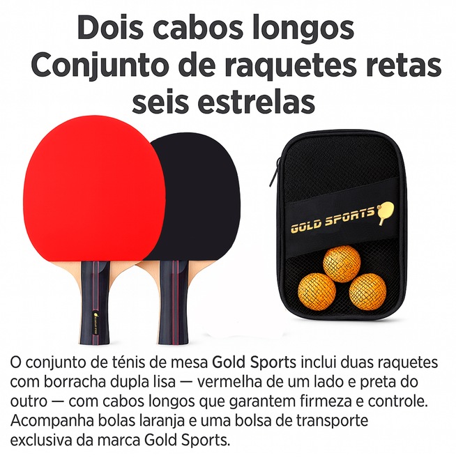 O Kit de Raquete de Tênis de Mesa Space "6 Estrelas" da Gold Sports é um conjunto de alta qualidade projetado para oferecer excelente desempenho a jogadores de todos os níveis, desde iniciantes até atletas profissionais.