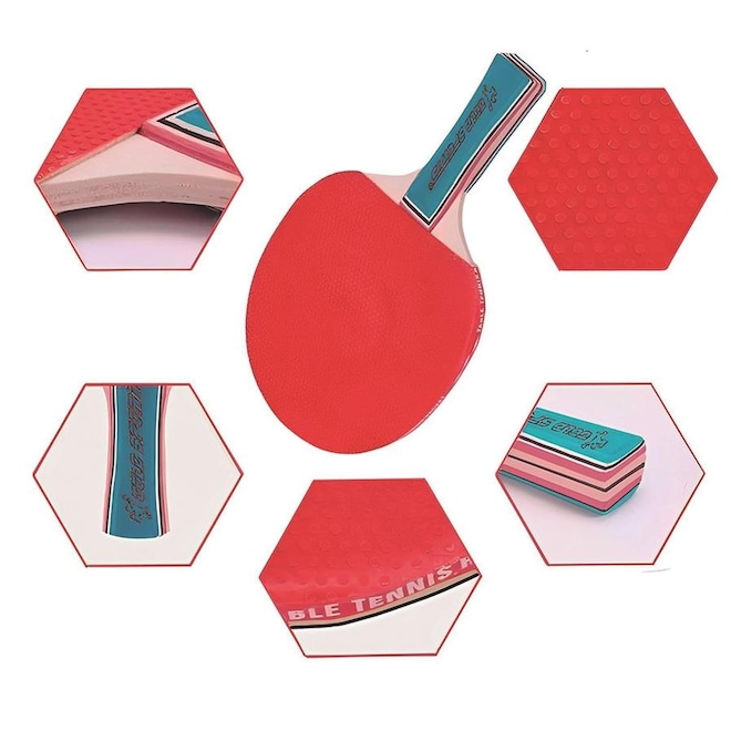 O Kit Tênis de Mesa Gold Sports Star - 2 Raquetes e 2 Bolas, raquetes borracha com pino e esponja laranja e outro lado com borracha preta lisa, e cabo anatômico para estilo de empunhadura clássico, com 5 laminas de madeiras ecológicas e bolas 40 mm é um kit ideal para jogadores training