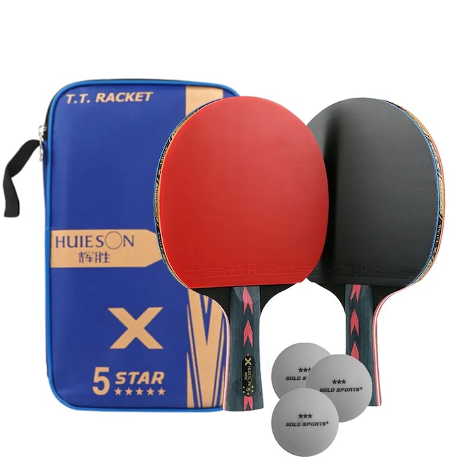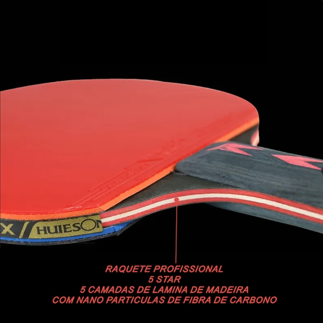 Kit Tênis de Mesa Hueson Carbon-2 Raq long 5 Estrela 3 bolas foi projetado para oferecer golpes super poderosos, tornando-o perfeito para jogadores avançados que desejam dominar a mesa.