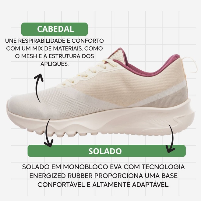 - ENERGIZED RUBBER: base confortável, adaptável a diferentes tipos de terrenos, com maior absorção e retorno de energia.