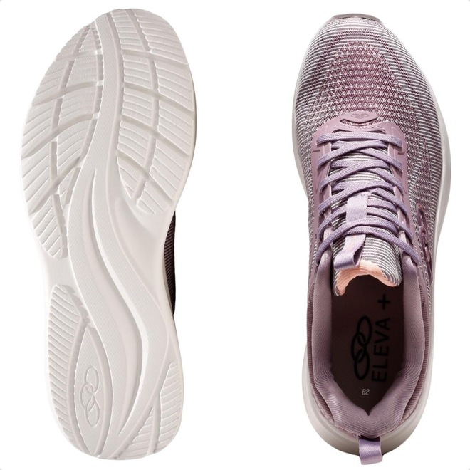 Na parte inferior, o solado e a entressola incorporam a tecnologia ELEVA+, responsável por proporcionar amortecimento superior, resiliência e um efeito de absorção de impactos que garante uma pisada suave, estável e responsiva. O interior acolchoado com forro em poliéster e a palmilha macia complementam o conjunto, oferecendo suporte e conforto prolongado.