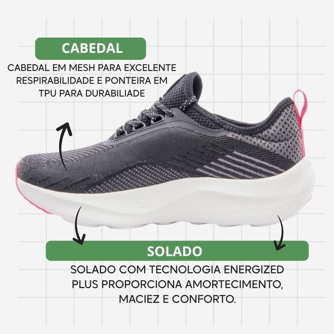 -ENERGIZED PLUS: tecnologia que oferece amortecimento superior e conforto prolongado.