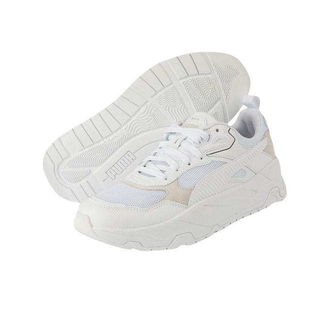 O Tênis Trinity tem tudo a ver com a nossa estética Futro, inspirando-se na herança e reinterpretando-a com um toque moderno. Esta edição apresenta uma base em mesh com detalhes de sobreposição bacanas e uma silhueta esportiva, para tênis que impressionam. O melhor de tudo é que a palmilha SoftFoam+ mantém você confortável o dia todo. O cabedal confeccionado em mesh com sobreposições sintéticas. Entressola em IMEVA garante segurança e máximo conforto. A Sola integral em borracha fornece estabilidade a cada pisada. Além de contar com a faixa PUMA Formstrip nos lados medial e lateral e a Logo PUMA Cat atrás do calcanhar. Não deixe escapar essa oportunidade de elevar seu estilo com o Tênis Puma Trinity. Adquira já o seu!!