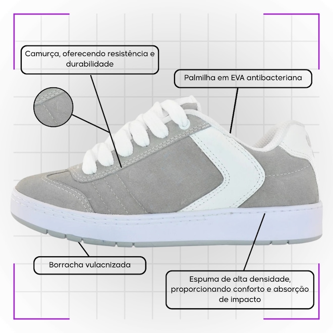 -Costura Dupla: reforço estrutural aplicado ao solado para maior durabilidade.