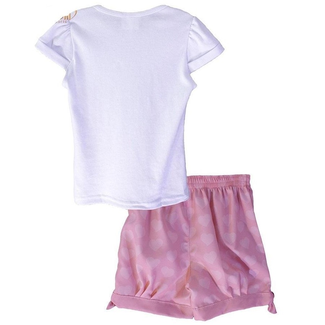 Composto por uma camiseta , com estampas de corações s e o escudo do time e um shorts com o escudo na parte frontal.