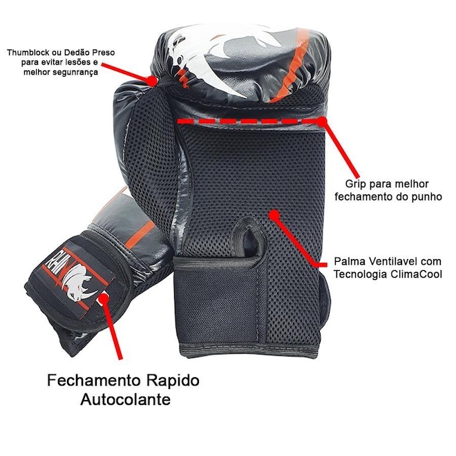 Kit de Treino Boxe Rhino com Luva + Bandagem+ Bucal + Bolsa - Adulto