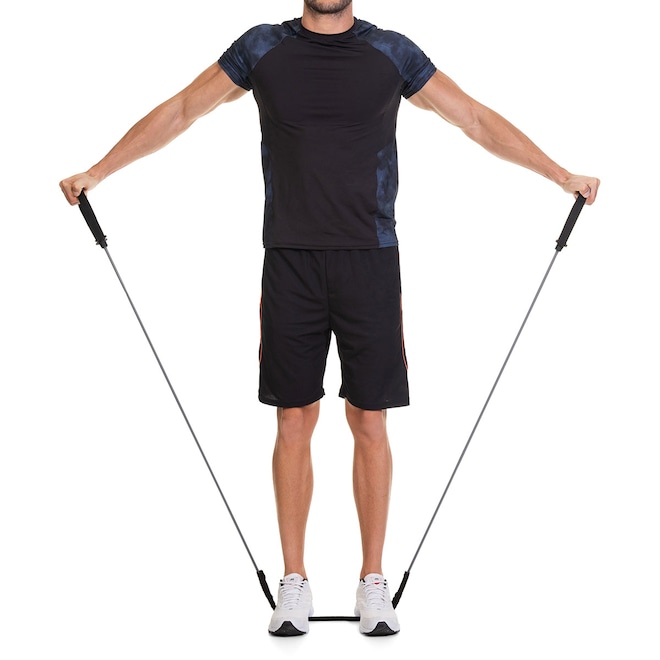 O Extensor Elástico Vollo permite a execução de uma ampla variedade de exercícios, trabalhando diferentes grupos musculares como braços, abdômen, glúteos e pernas. Além de fortalecer, também auxilia na coordenação motora, na mobilidade e no alinhamento postural. Sua portabilidade garante treinos eficazes em qualquer lugar.
