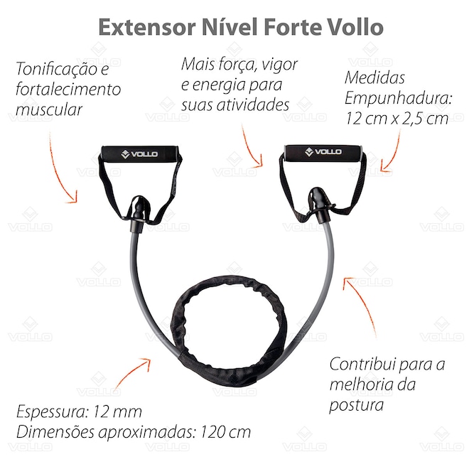Especificações Kit Extensor Elástico + Roda Abdominal Vollo