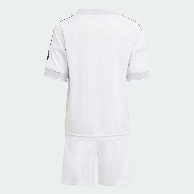 Vestido com o icônico branco, este conjunto de camisa, shorts e meias celebra a história do lendário estádio do clube com detalhes inspirados em sua evolução.