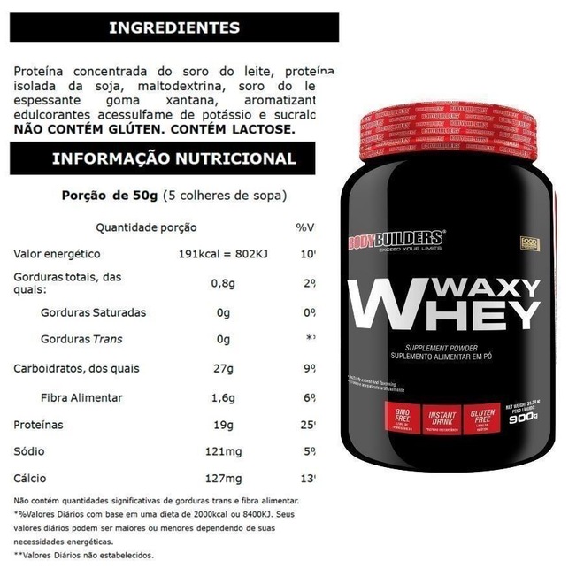 WAXY WHEY BODYBUILDERS possui em sua formulação a proteína concentrada do soro do leite (WPC), uma proteína de alto valor biológico, rica em BCAA's (aminoácidos de cadeia ramificada).A suplementação de proteína potencializa, na maioria das vezes, o aumento e a força dos feixes musculares quando associada a um programa de exercícios físicos, demonstrado por artigos científicos.