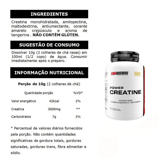 C) Creatina: Misture 10g (2 colheres de chá) em 100ml (1/2 copo) de água.