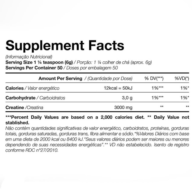 Cada dose possui apenas 12 calorias e entrega 3g da substância por dose.