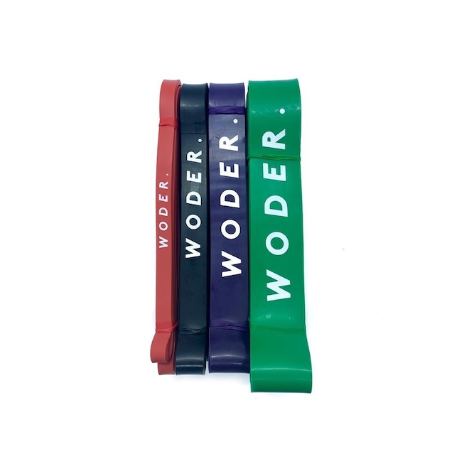 O Kit Power Band 4 Intensidades WODER é ideal para potencializar treinos de força, resistência, velocidade e estabilização.