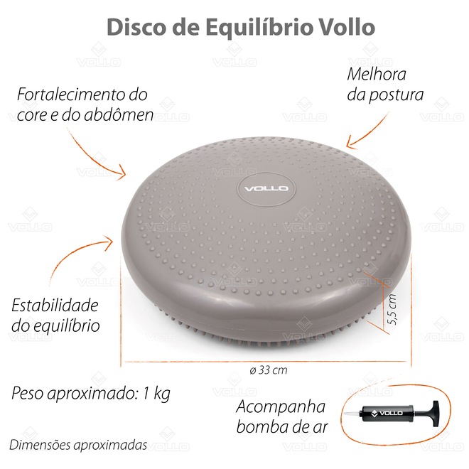 Já o Disco de Equilíbrio Vollo traz um desafio a mais para os treinos. Sua estrutura instável fortalece músculos, melhora a postura, equilíbrio e flexibilidade, além de ser um aliado importante na coordenação motora e até em processos de reabilitação. Perfeito para intensificar treinos de pilates, atividades esportivas ou fisioterapia.