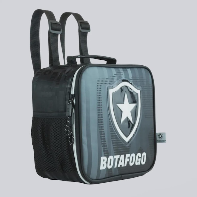 Dimensões aproximadas (A x L x P): 19 cm x 21 x 10 cmAlças: Uma de mão e duas para os ombrosCompartimento: Um principal amploComposição: 80% Poliéster e 20% Policloreto de VinilaClube: BotafogoCor predominante: PretoPeso aproximado: 200gEscudo: AplicadoOrigem: ImportadoGênero: UnissexTamanho único