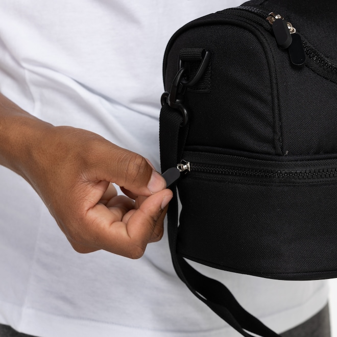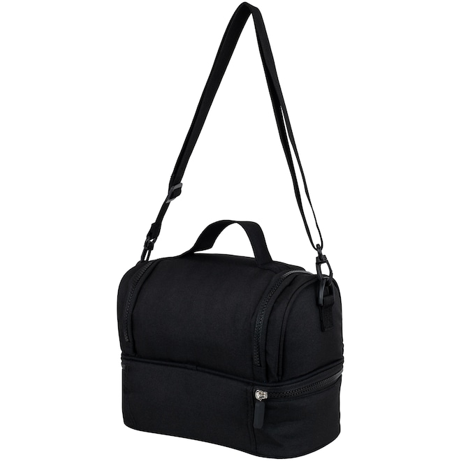 Com dois compartimentos, divisória interna para organização eficiente, e alça tiracolo para fácil transporte, essa lancheira é perfeita para manter suas refeições sempre frescas.